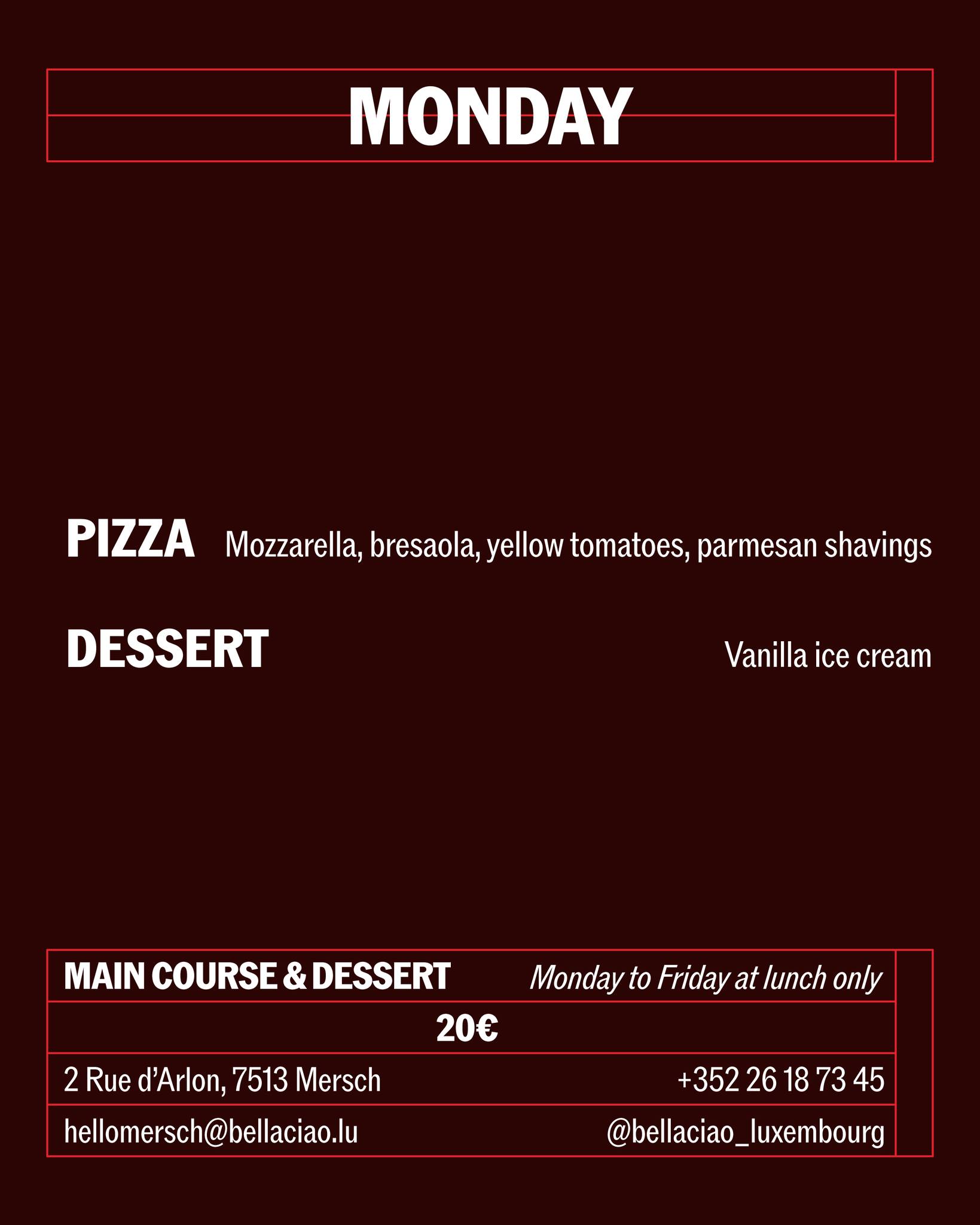 The skilled culinary team at Bella Ciao brings authentic Italian flavors to life with their mastery of traditional recipes. Guests can enjoy a diverse menu featuring classic Italian pizzas and a wide selection of Italian dishes. Bella Ciao stands out by offering exclusive signature creations alongside beloved Italian favorites. With attentive service and a menu suited for any occasion, Bella Ciao delivers an unforgettable dining experience in Luxembourg.